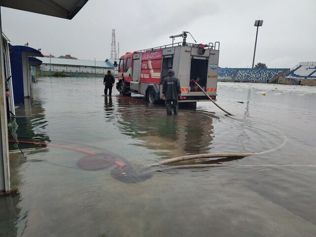 بازی تیمهای ملون اتزلی و خیبر خرم آباد به دلیل آب گرفتگی شدید ورزشگاه سیروس قایقران انزلی لغو شد.